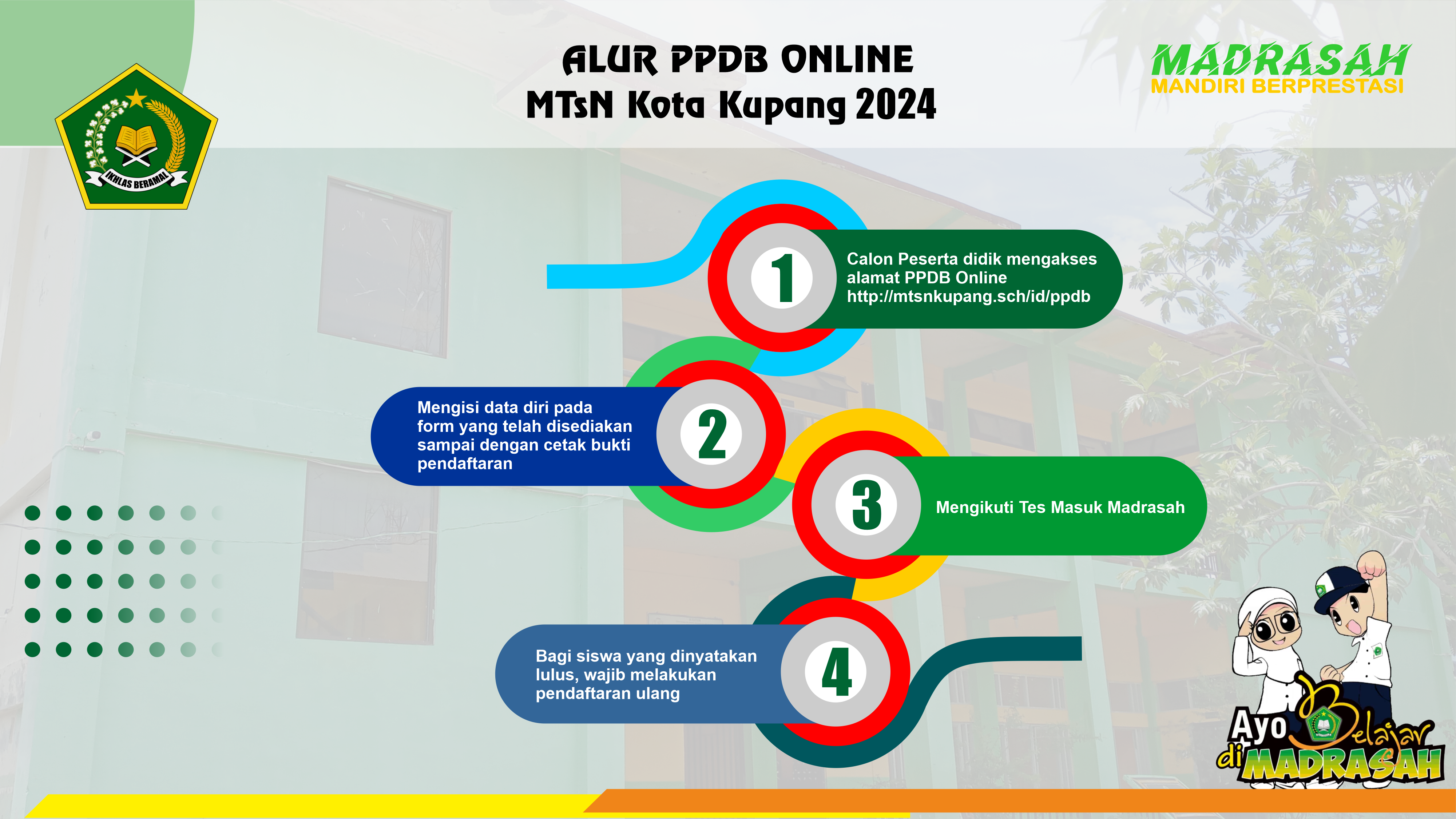 MTsN KOTA KUPANG menyediakan PPDB secara online diharapkan proses PPDB dapat berjalan cepat dan bisa dilakukan dimanapun dan kapanpun selama sesi PPDB Online dibuka. MTsN KOTA KUPANG.